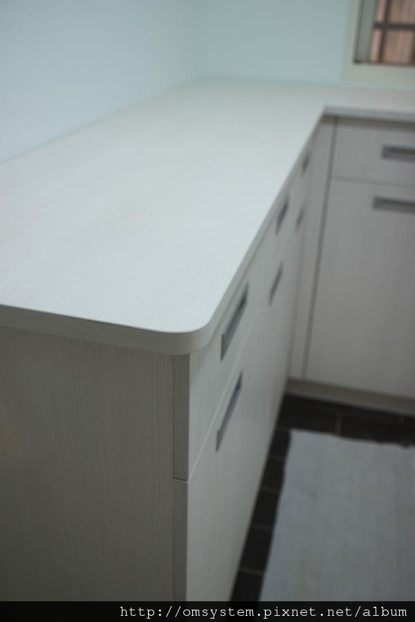 我採用檯面與兩邊側邊都使用25MMㄉ板材 讓櫃體附有扎實感